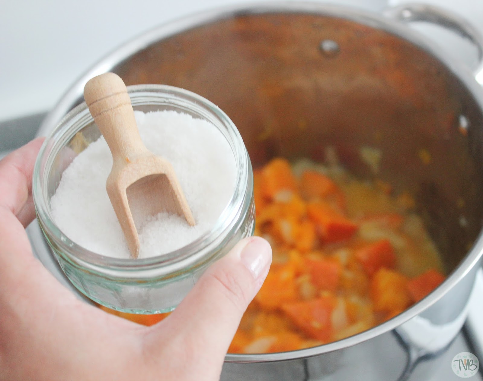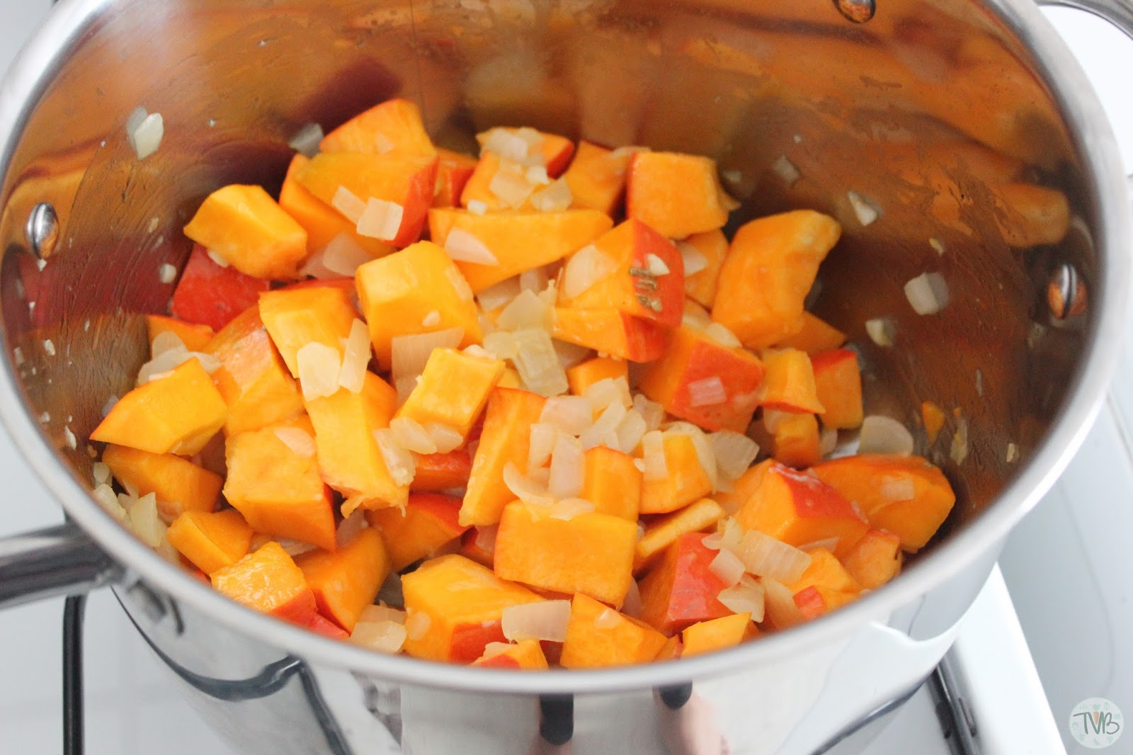 und dünstet den Kürbis ca. 15 Minuten bis er schön weicht geworden ist. In der