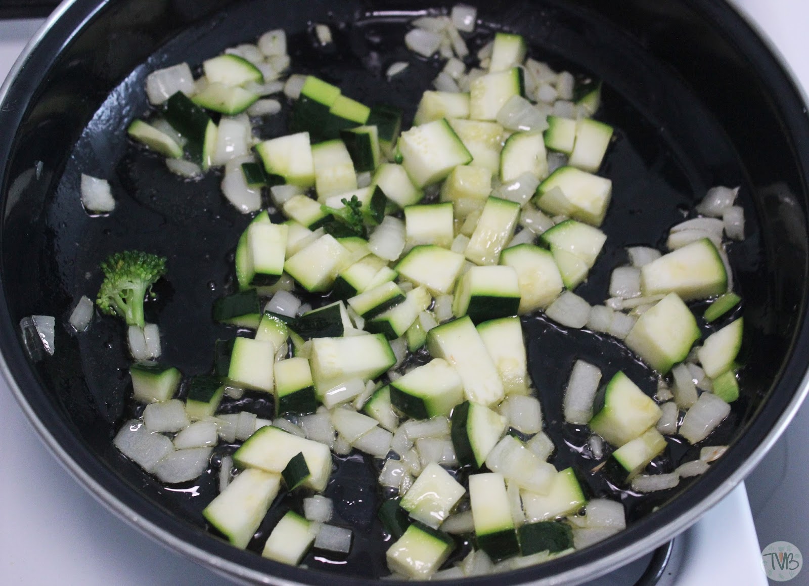der Zucchini und nach ca. 5 Minuten auch der Brokkoli direkt aus dem
