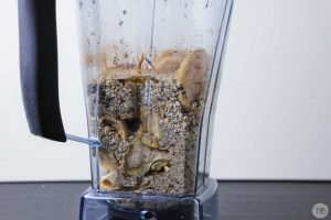 - Als erstes gebe ich alle Zutaten nach und nach in meinen Mixer. Alles bis auf den Kakao! Dann mixe ich alles ordentlich durch.