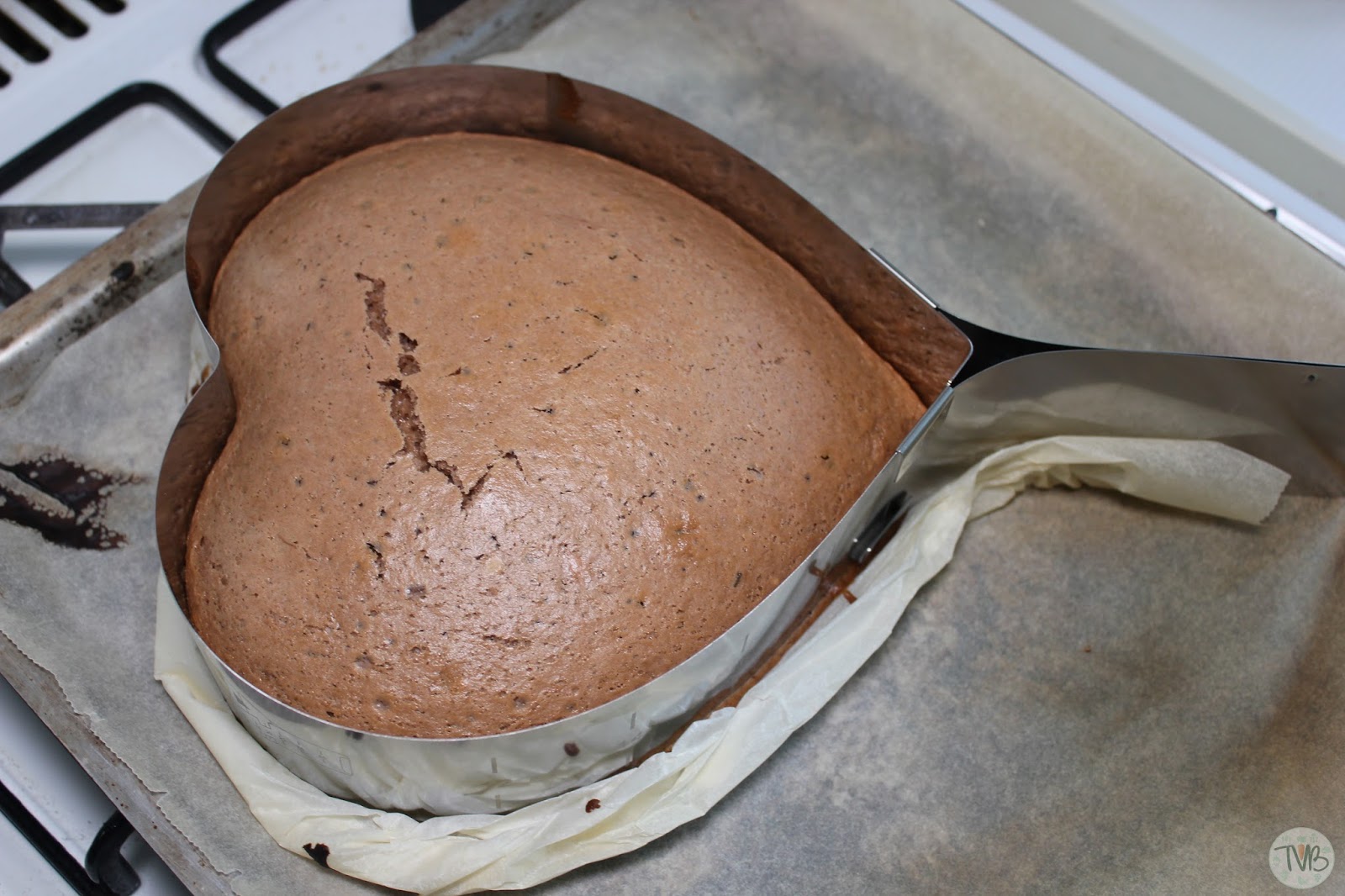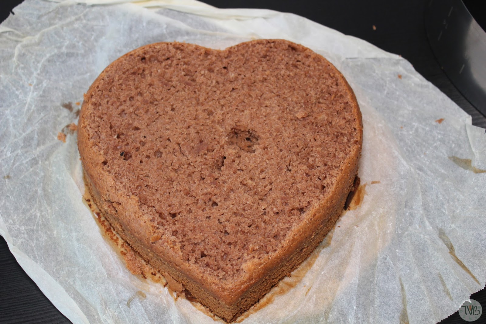 abgekühlt. Da der Kuchen oben nicht ganz flach ist begradige ich ihn erstmal