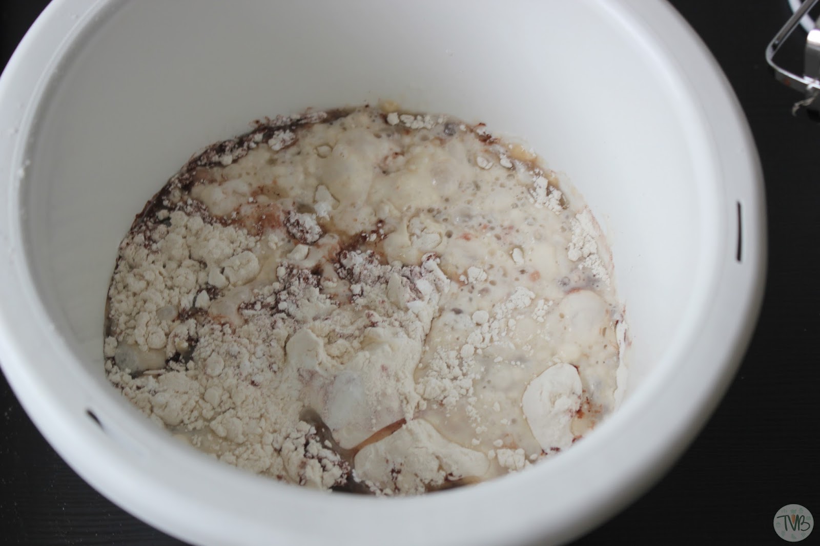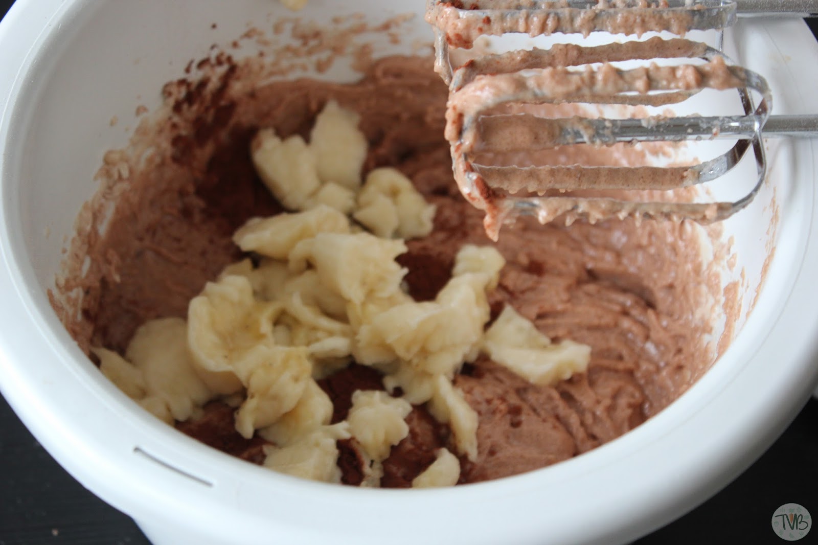auch die flüssigen Zutaten, sowie die Banane dazu.