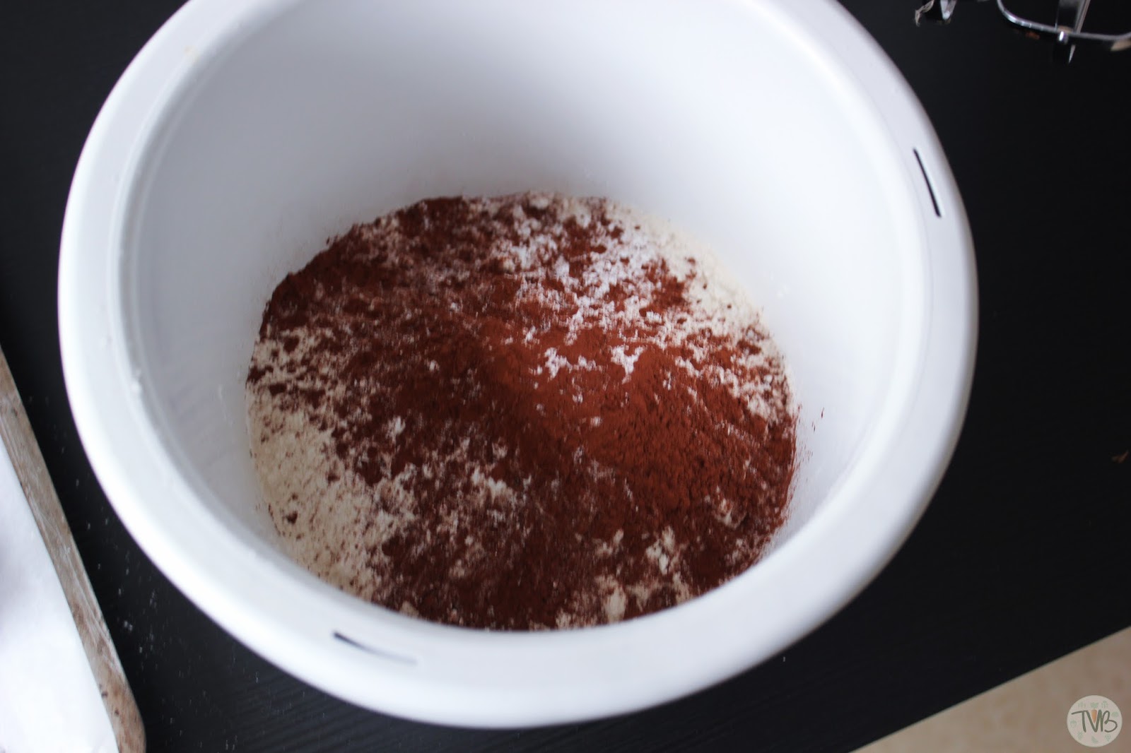 Boden. Dafür gebe ich alle trockenen Zutaten in eine Schüssel.