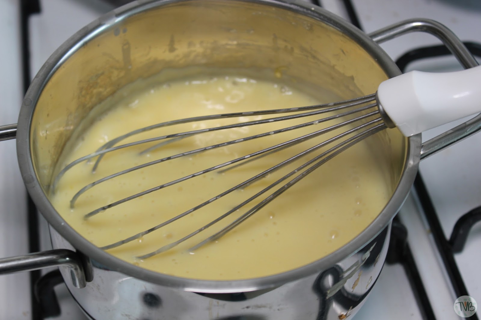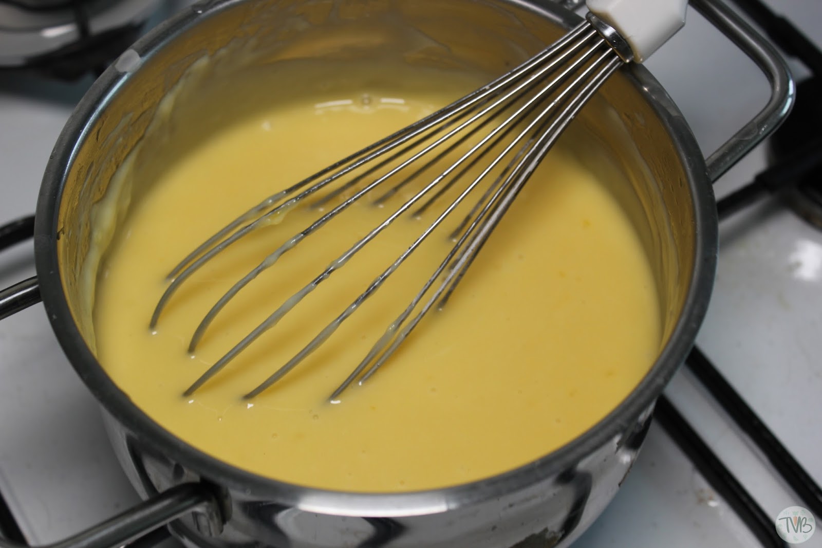 die Puddingcreme. Dazu bereite ich den Pudding wie in der Anleitung auf der