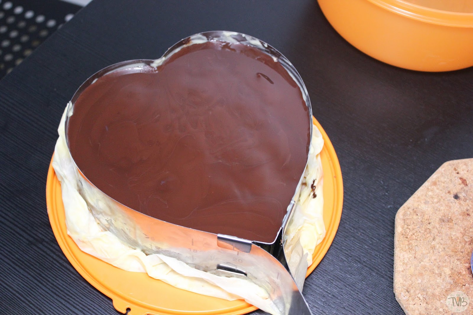 Kühlschrank gestellt und die Torte fest werden lassen.