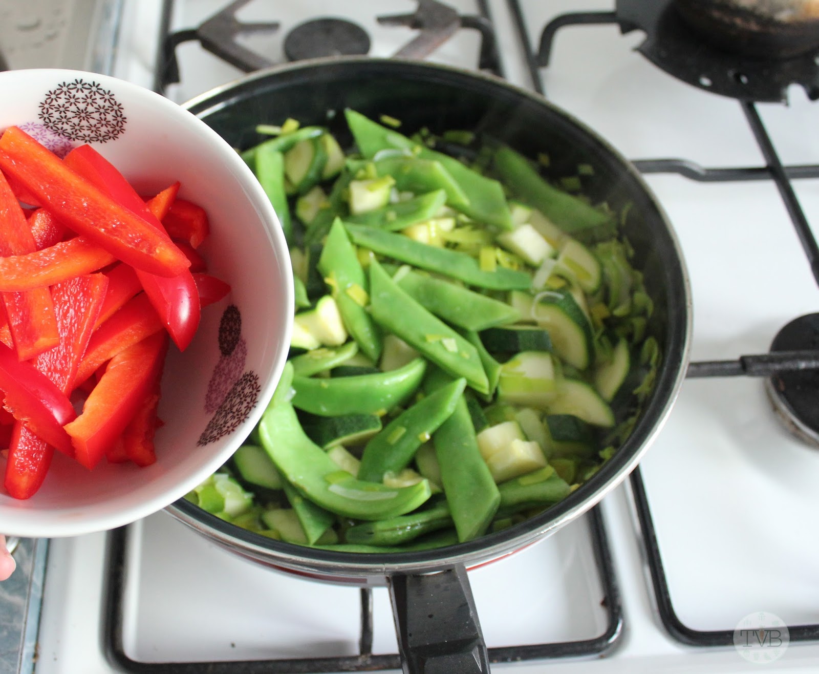 beiden Zutaten etwas garen hab lassen, gebe ich den Rest dazu.