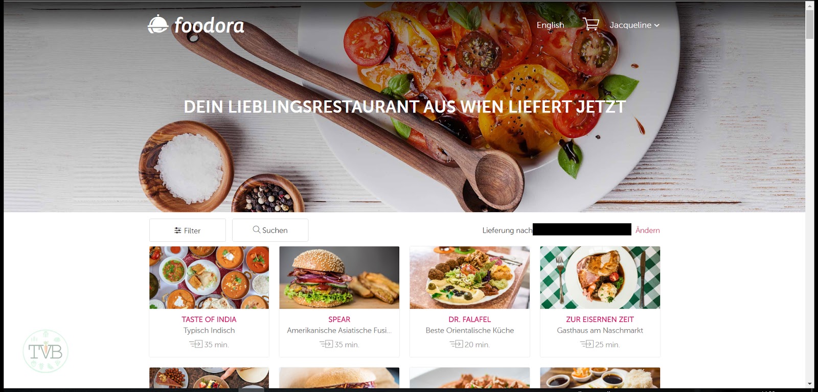 Ich habe also meine Adresse bei Foodora eingegeben und alle Lokale in meiner Nähe angezeigt bekommen.