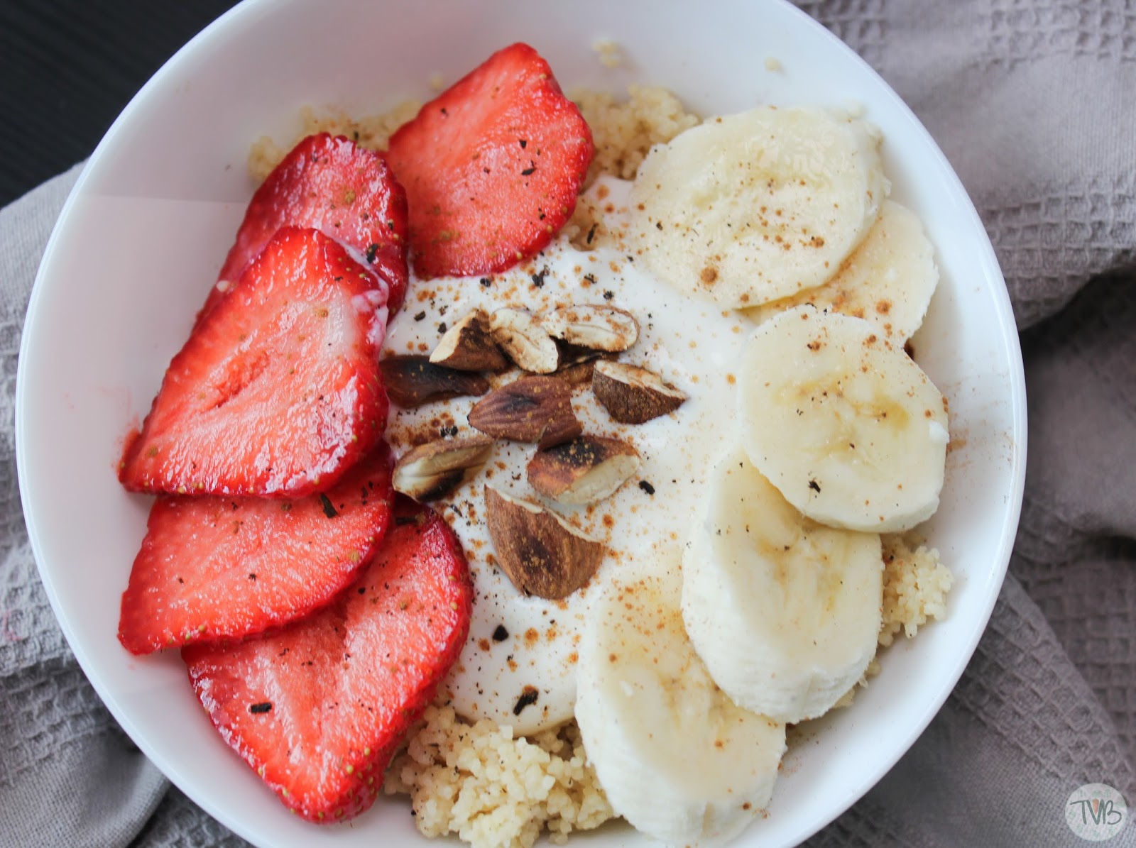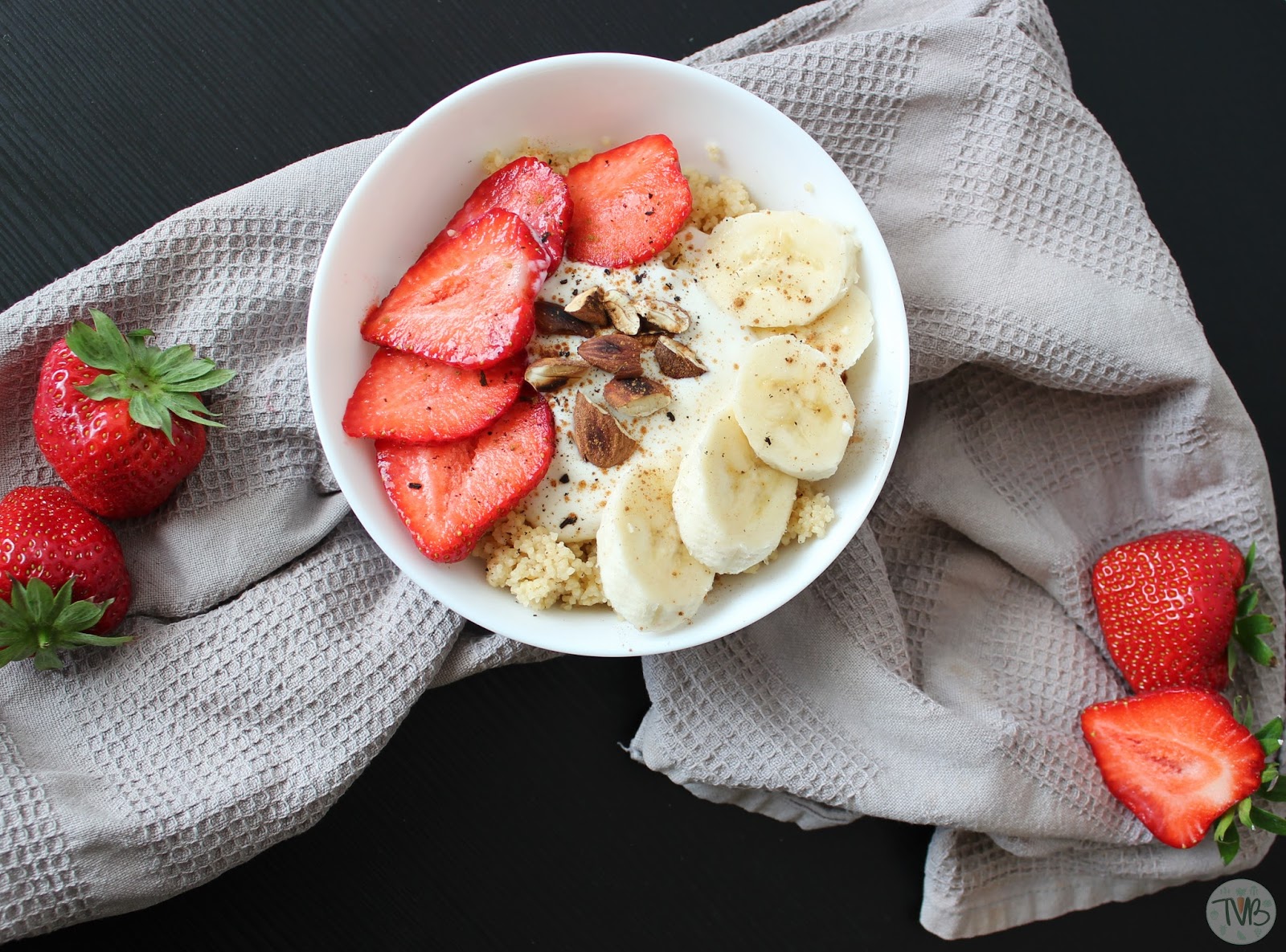 Ich esse eigentlich nur am Wochenende richtig Frühstück. Aber dann auch gerne Haferflocken oder Couscous. Am liebsten noch warm mit ganz viel frischem Obst 🙂