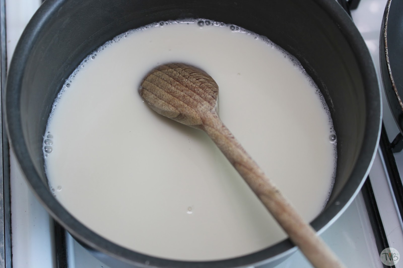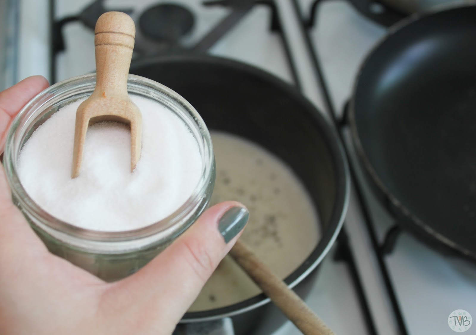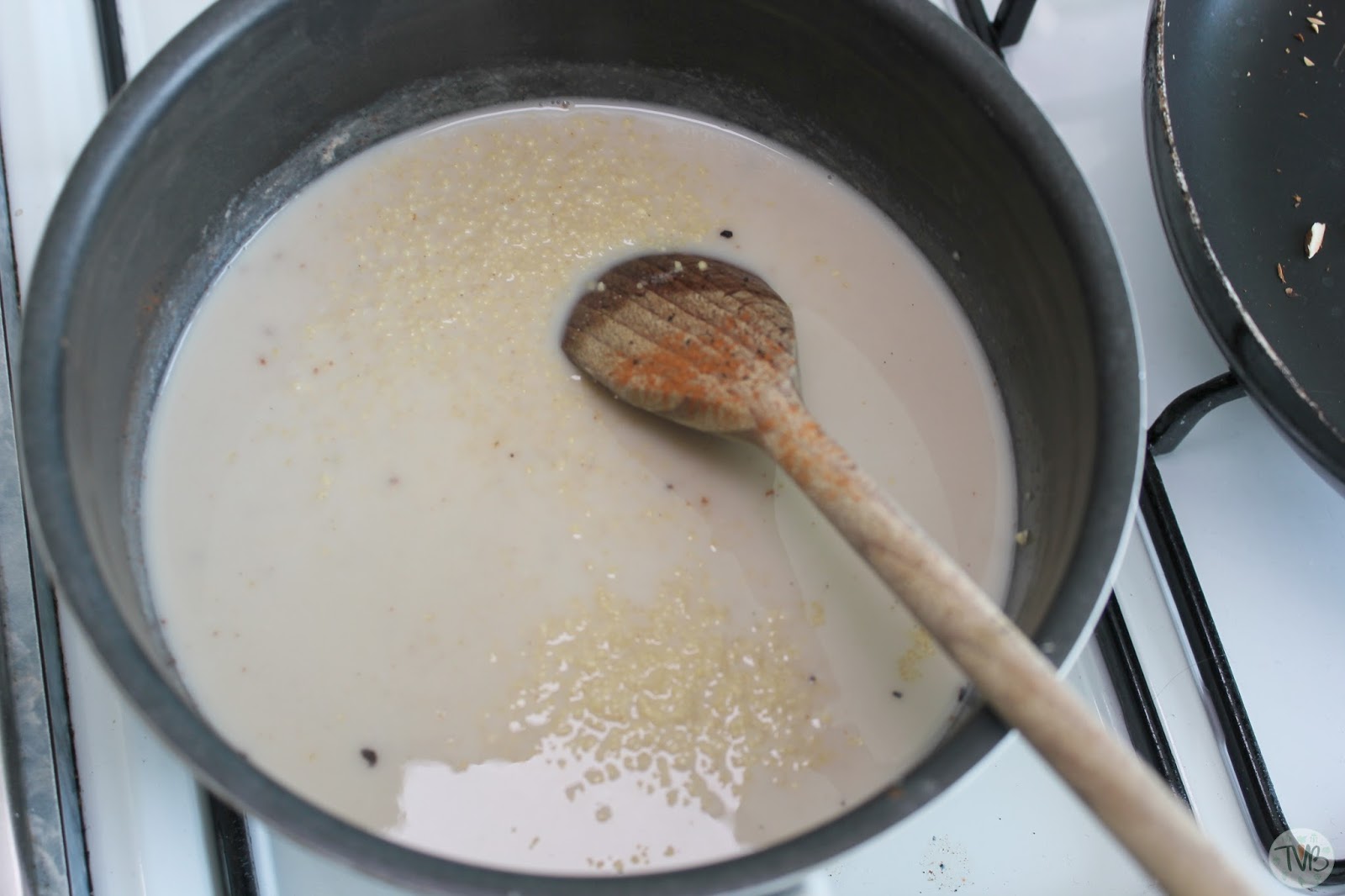 Wahl, mit der Vanille, dem Zimt und Salz in einen Topf. Koch das ganze einmal
