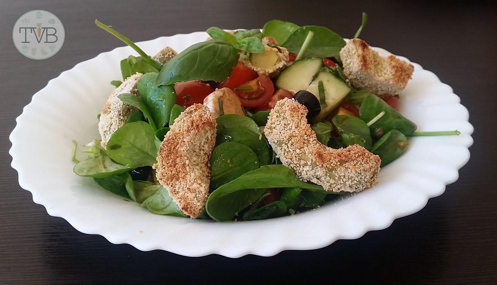 Kennt ihr das, ihr geht in eine Restaurant und hättet lust auf so einen richtig großen Salat, aber der einzige der euch zusagen würde ist mit gebackenen Huhn. Die Fleischesser unter euch, werden jetzt sagen: „Was hast du ist ja ohnehin voll gut so“! Aber die Veggies wissen was ich meine.