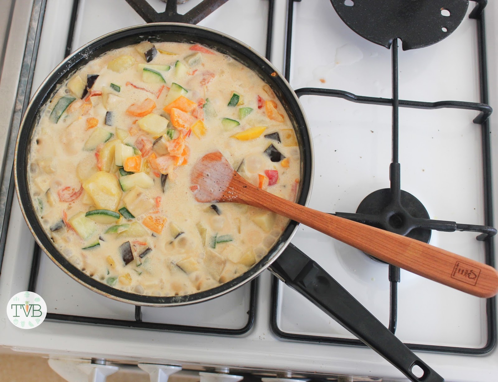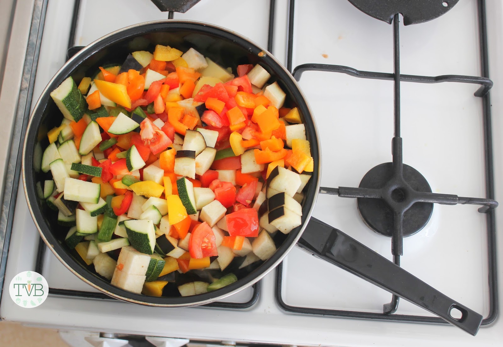Das ganze klein Geschnittene kommt dann in die Pfanne und wird einmal scharf angebraten.