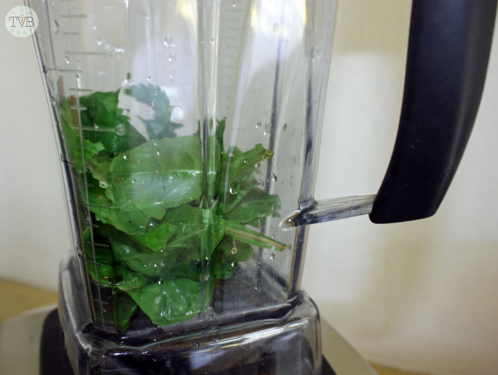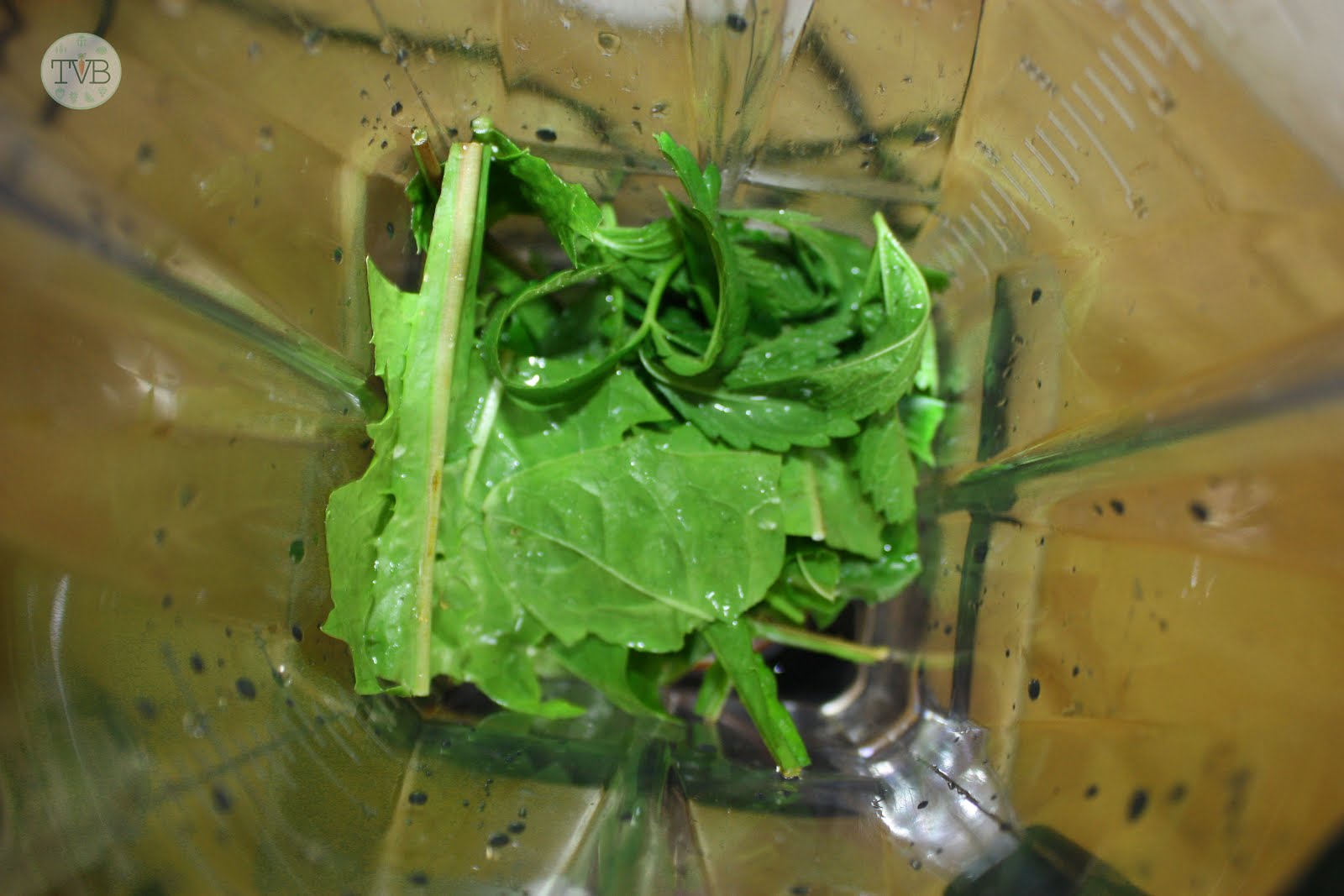 Als erstes wasche ich die Kräuter aus der Garten und gebe sie in den Mixer.