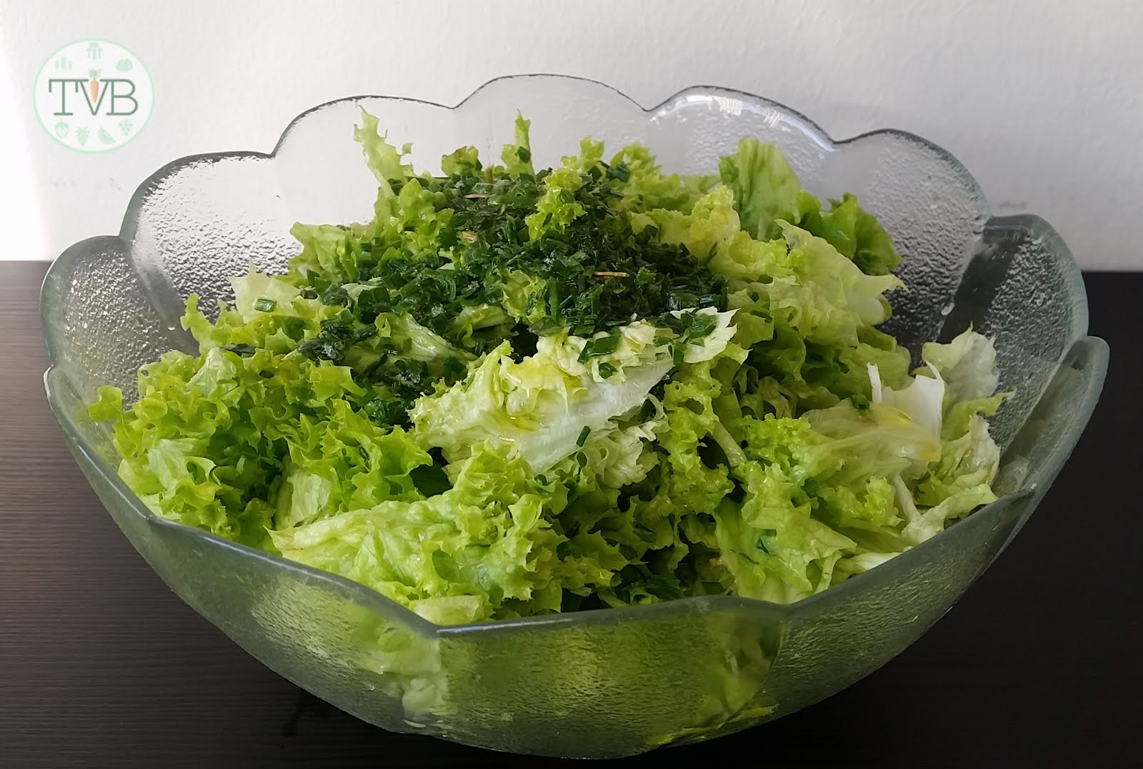 Während die Puffer brutzeln, bereite ich noch den Schnittlauch Dip vor. Einfach alle Zutaten zusammen mischen. Außerdem richte ich noch einen grünen Salat.