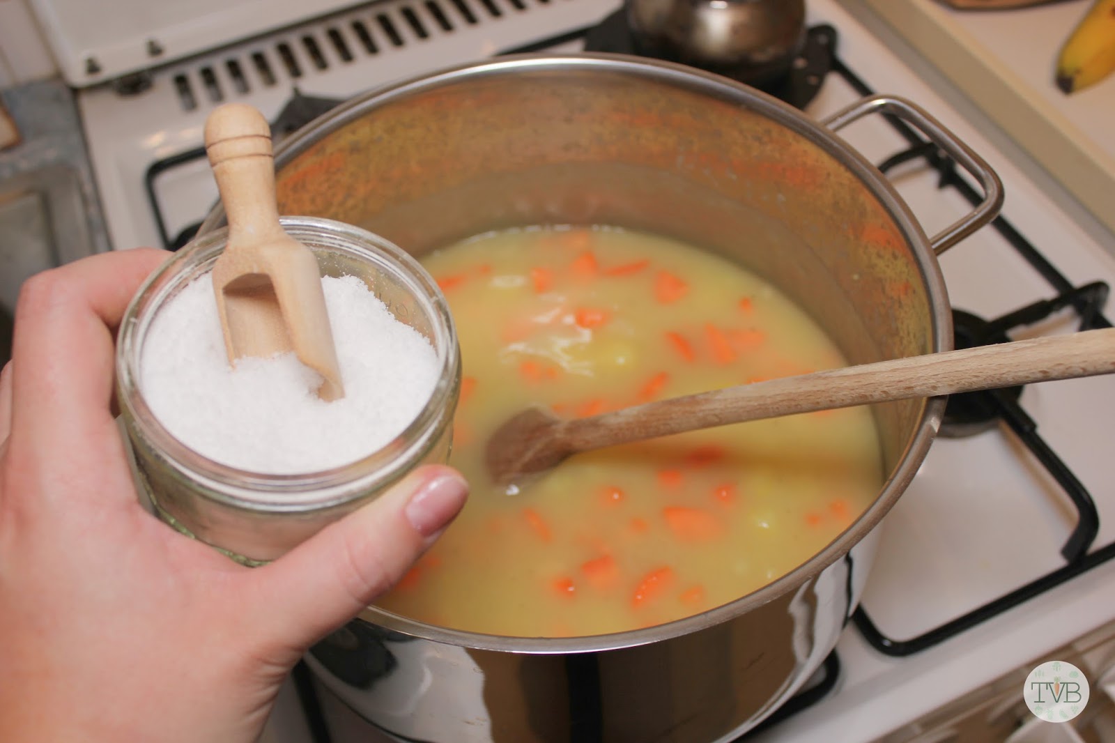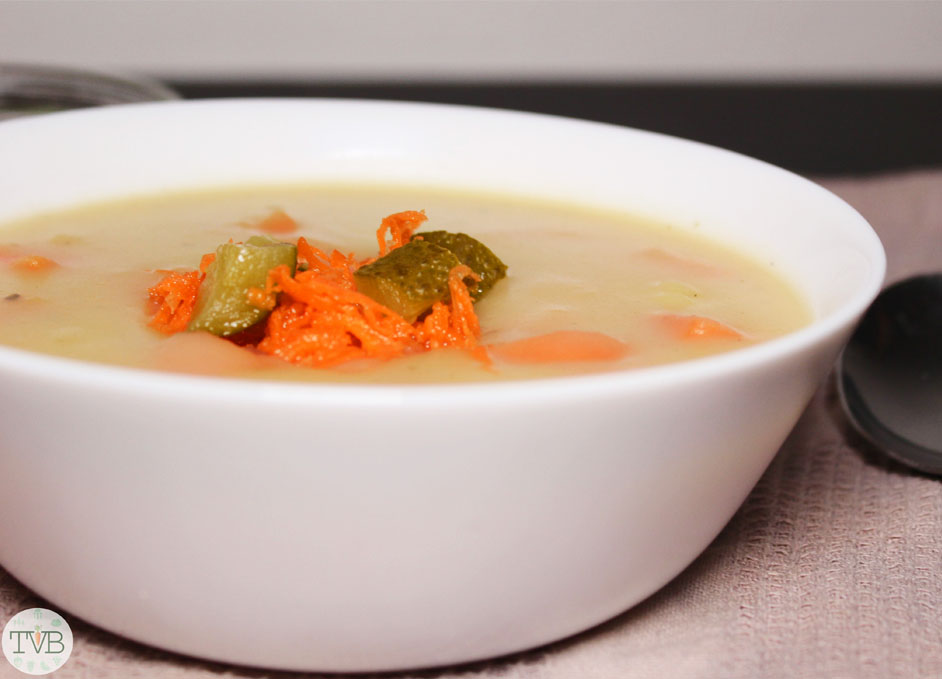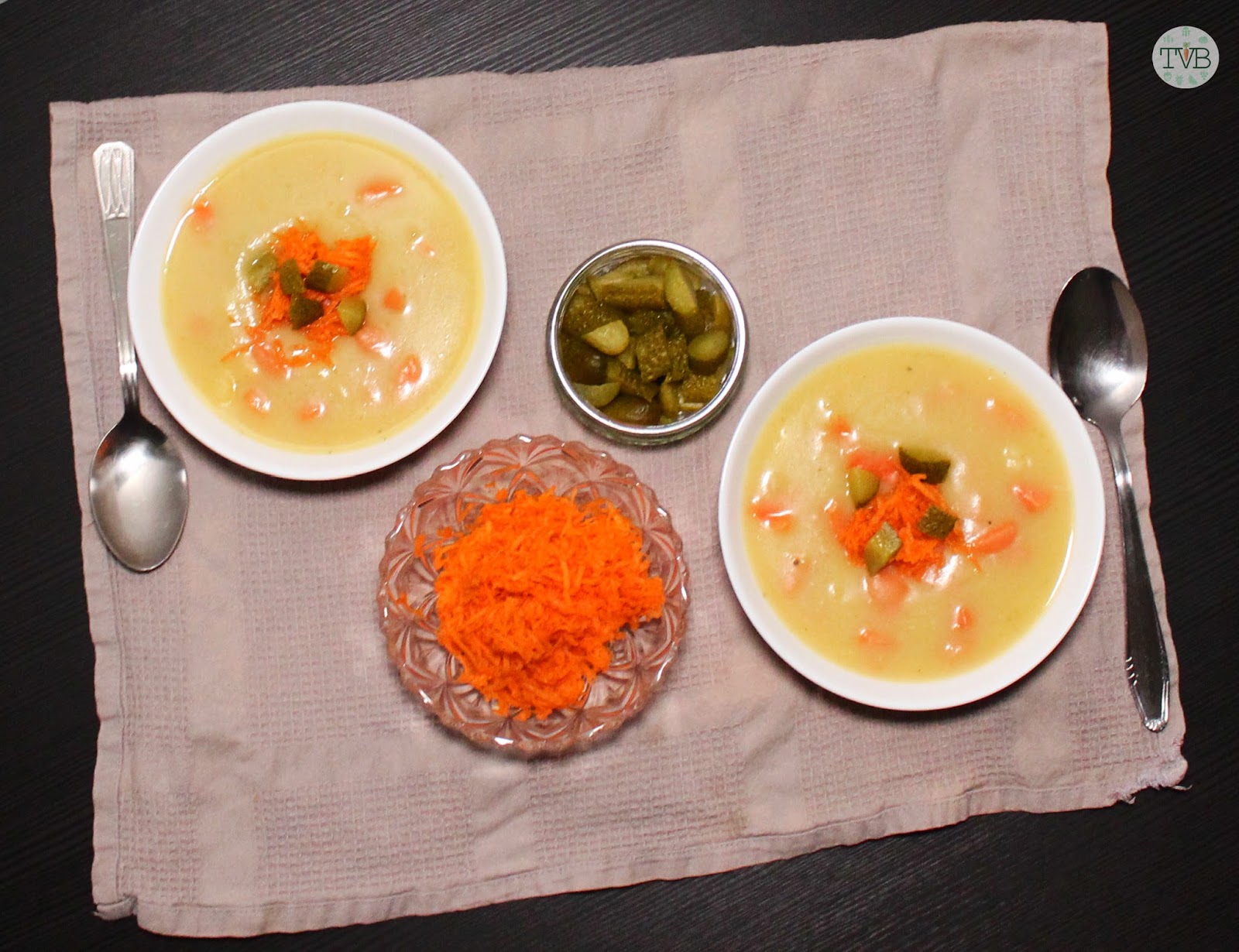 Sie hat das ganze mit Sauerrahm und Frankfurter Würstchen gemacht, bei mir gibt es heute aber die vegane Version der Suppe, viel Spaß!