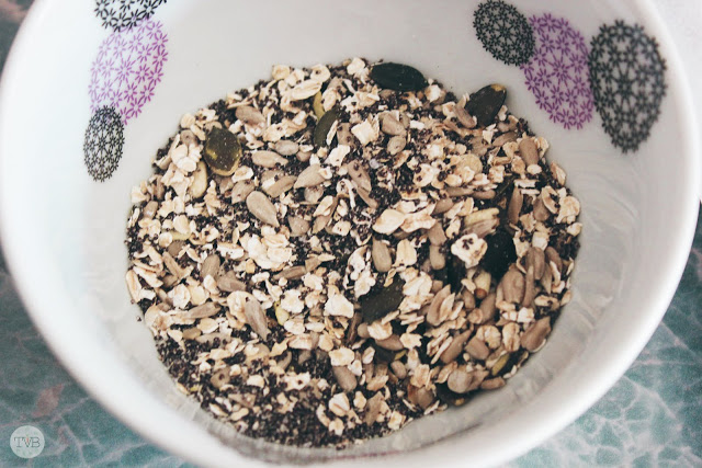 Bestreicht sie mit Wasser und gebt die Körnermischung, die ihr vorher am besten in einer kleinen Schüssel zusammen rührt darauf.