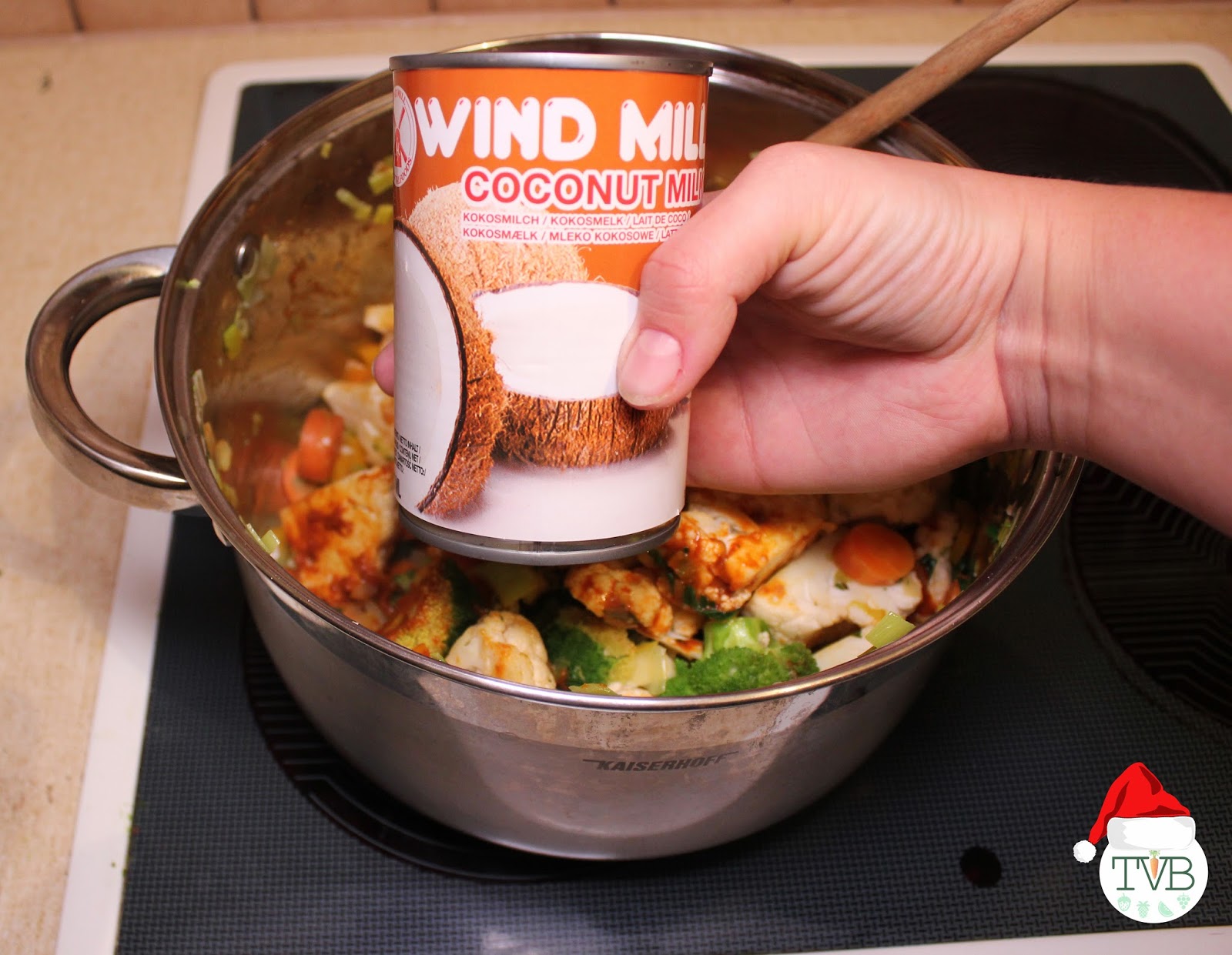 Das ganze wird dann mit der Kokosmilch aufgegossen und mit Maizener gebunden.