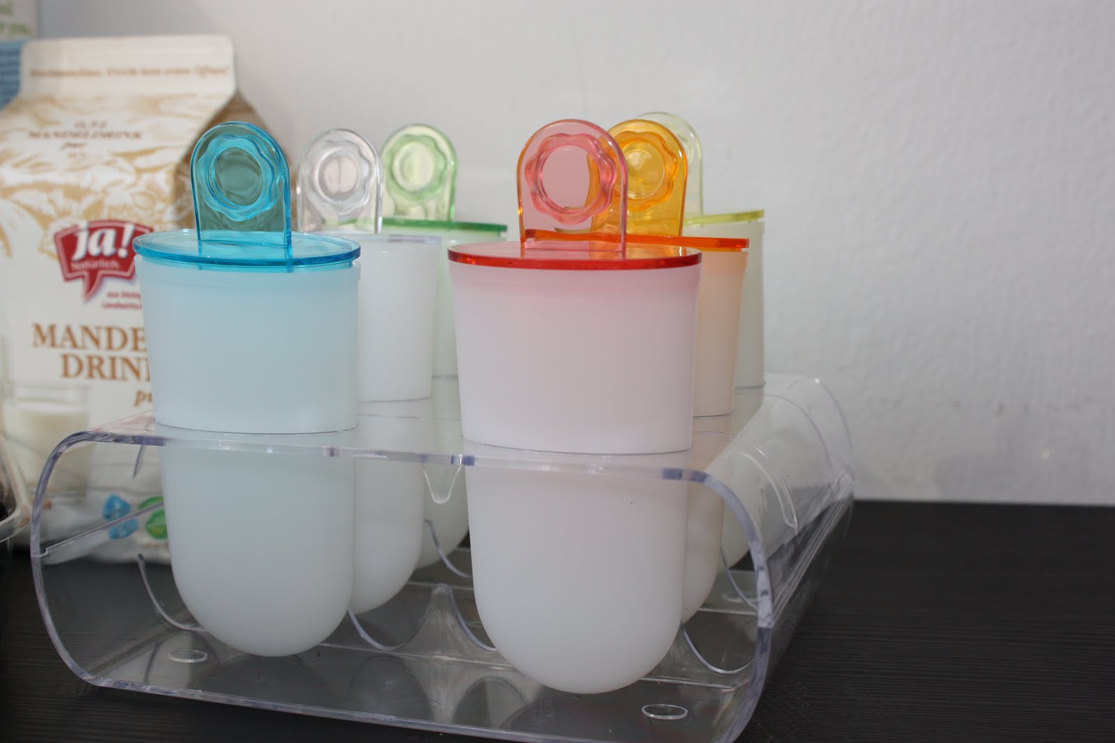 Das ganze habe ich über Nacht in den Eiskasten gegeben und voooiiiillaaa fertig ist unser selbst gemachtes Eis am Stiel.