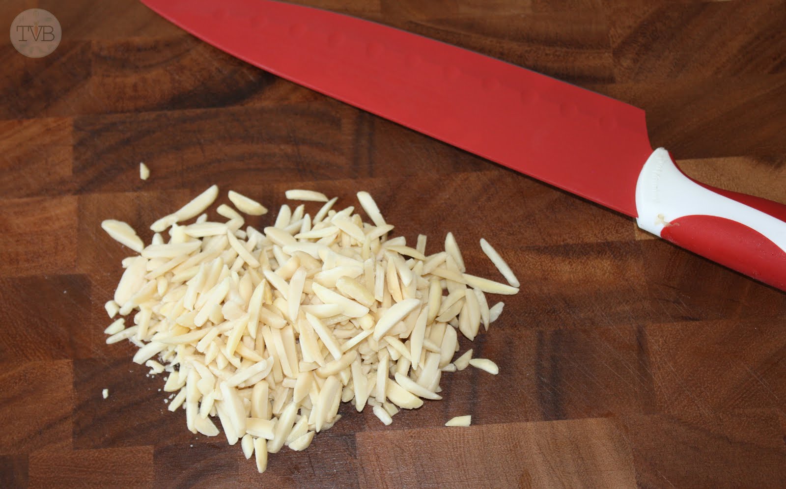das Ganze mit den gehakten Mandeln und etwas Zucker.