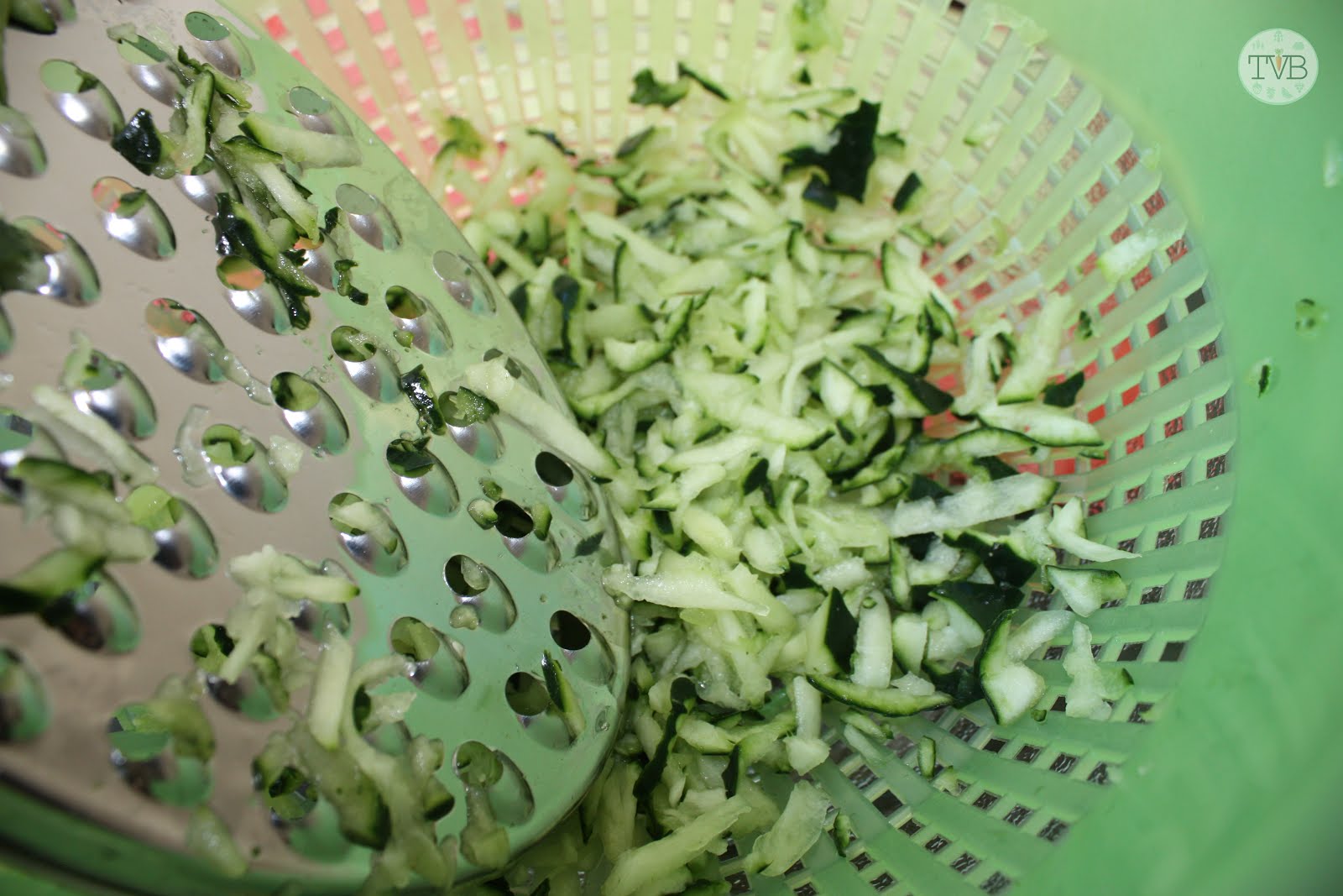 Dann reibt Ihr die Gurke, am besten direkt in ein Sieb, dann könnt ihr die geriebene Gurke gleich direkt ausdrücken. Gebt etwas Salz dazu um die Gurke noch mehr vom Wasser zu befreien. Lasst das ganze am besten ca. 30 Minuten stehen damit die Gurke abtropfen kann.