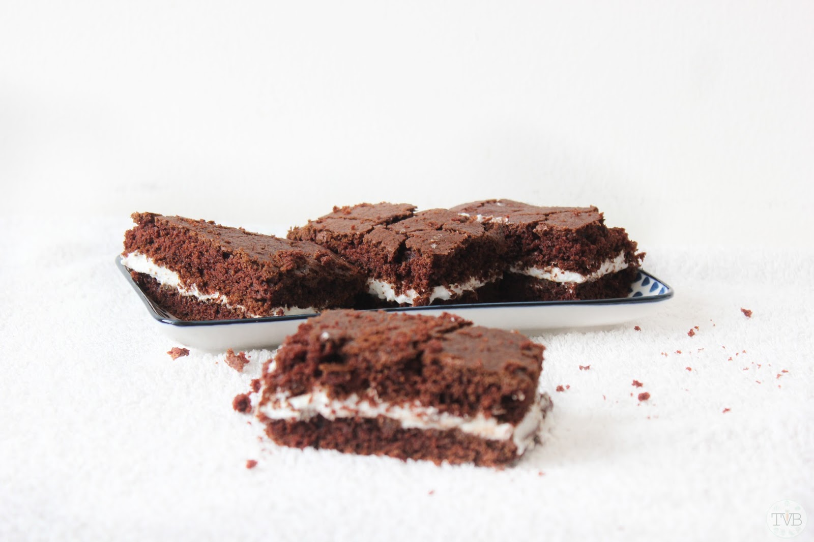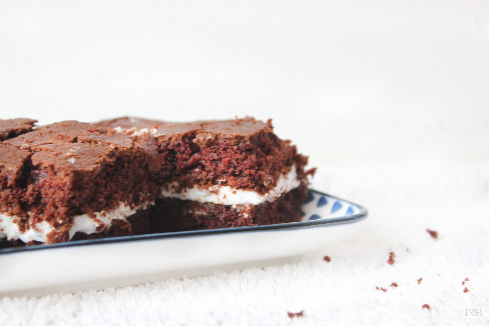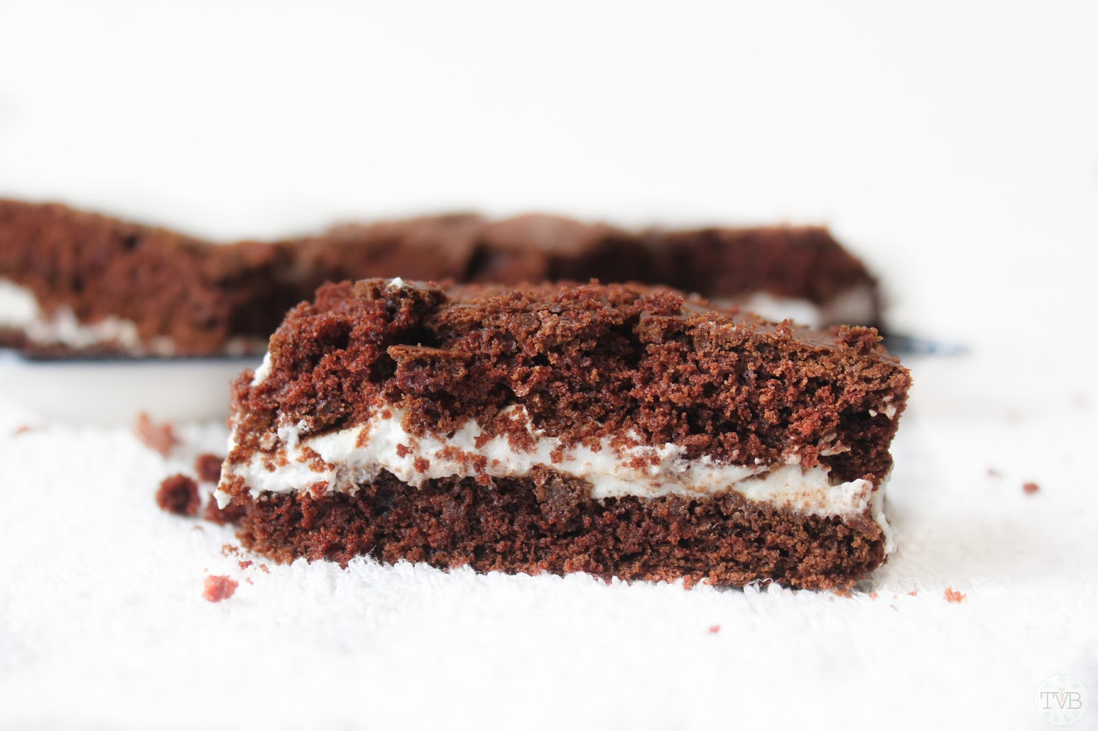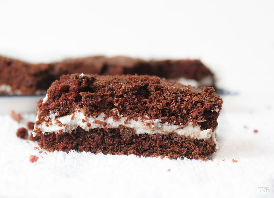 Also der Schokoladen-Teig kommt einer echte Milchschnitte schon sehr nahe, aber die Milchcreme ist viel luftiger als die in einer Milchschnitte. Insgesamt ist das ganze hold auch viel weniger süß 😉