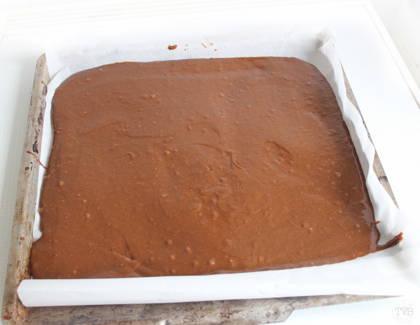 ich dann auf mein Backblech gestrichen, das habe ich vorher mit Backpapier