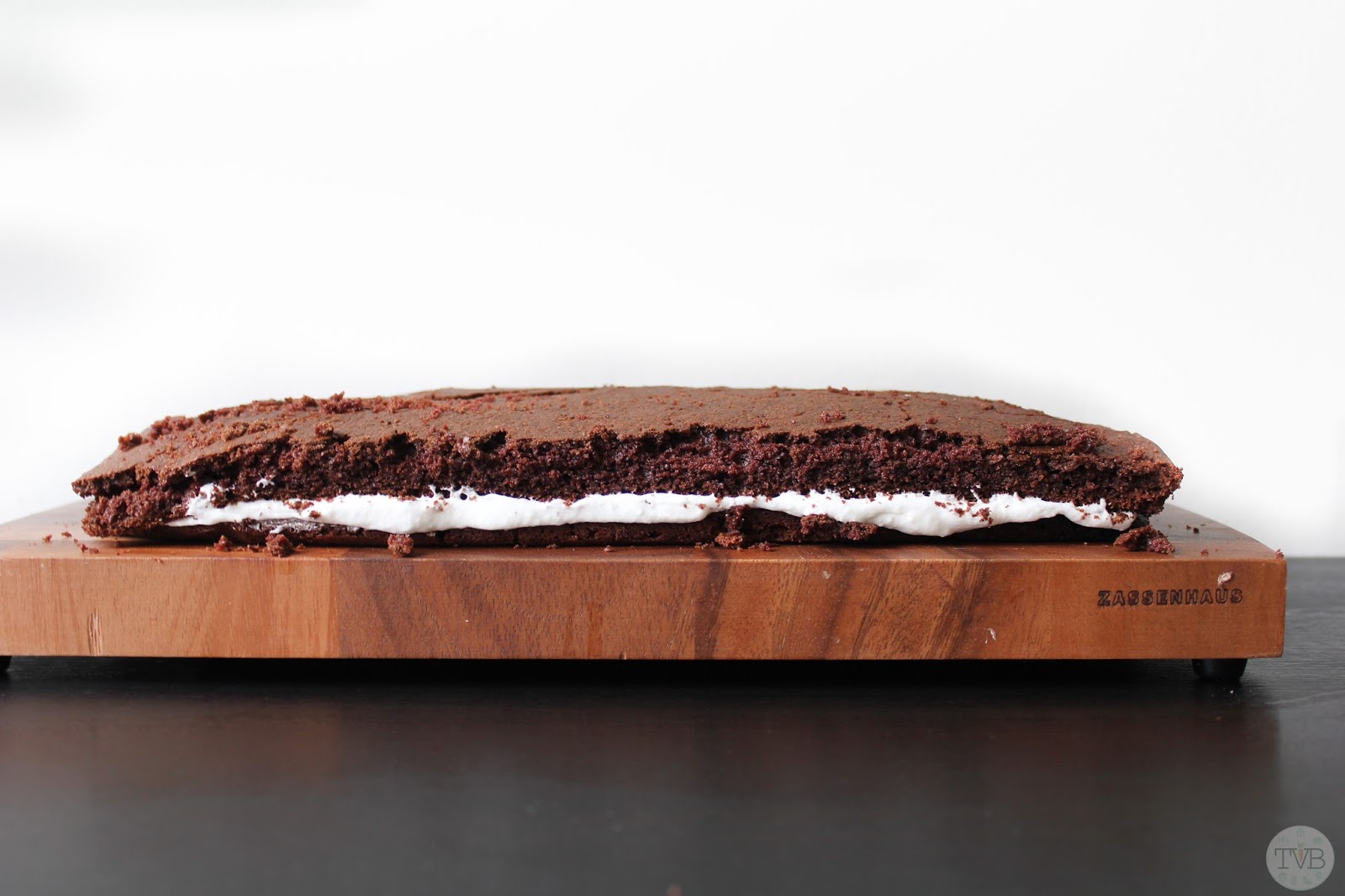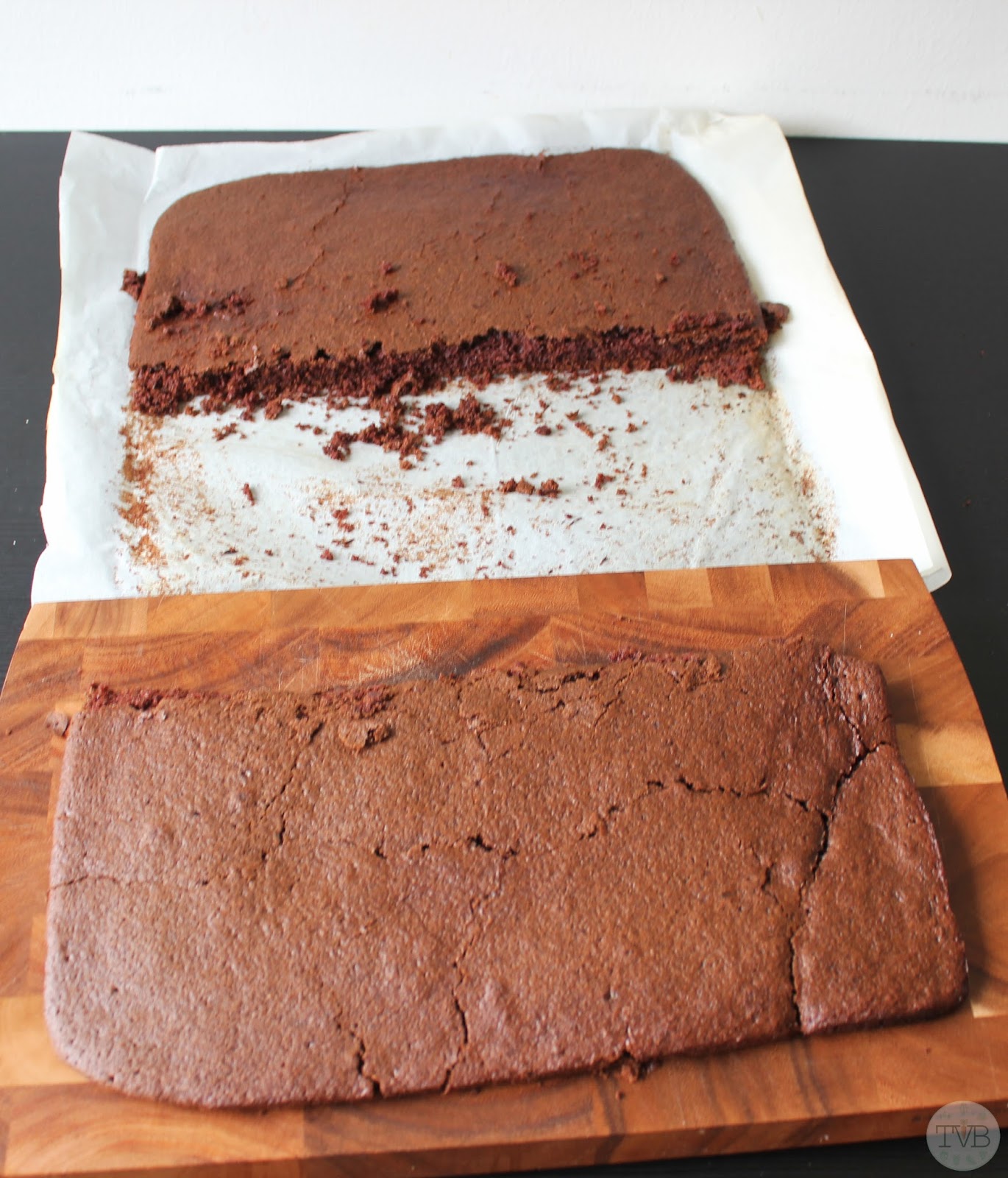 fertig und abgekühlt ist schneidet ihr den Kuchen einmal durch (wie am Bild)