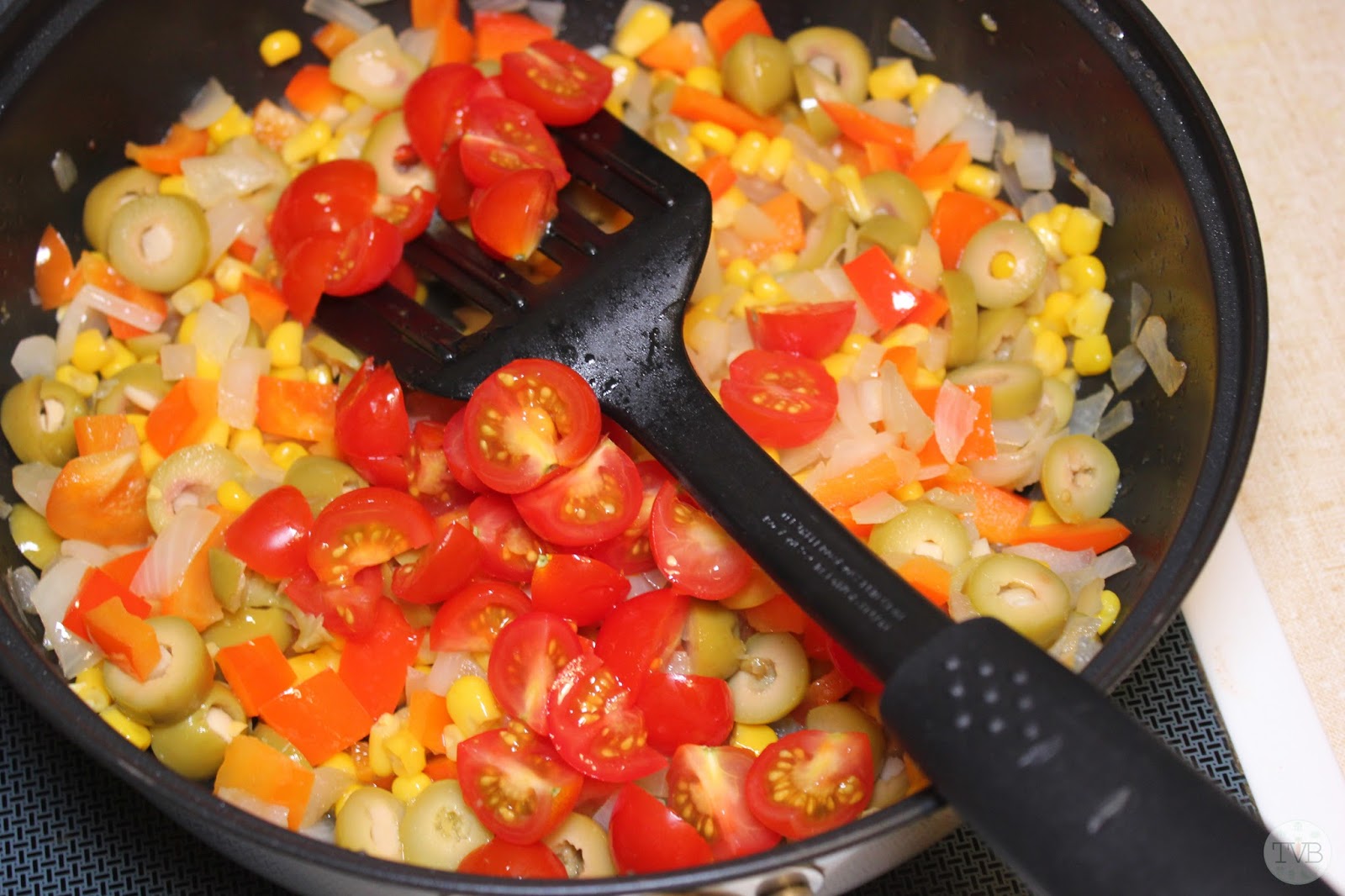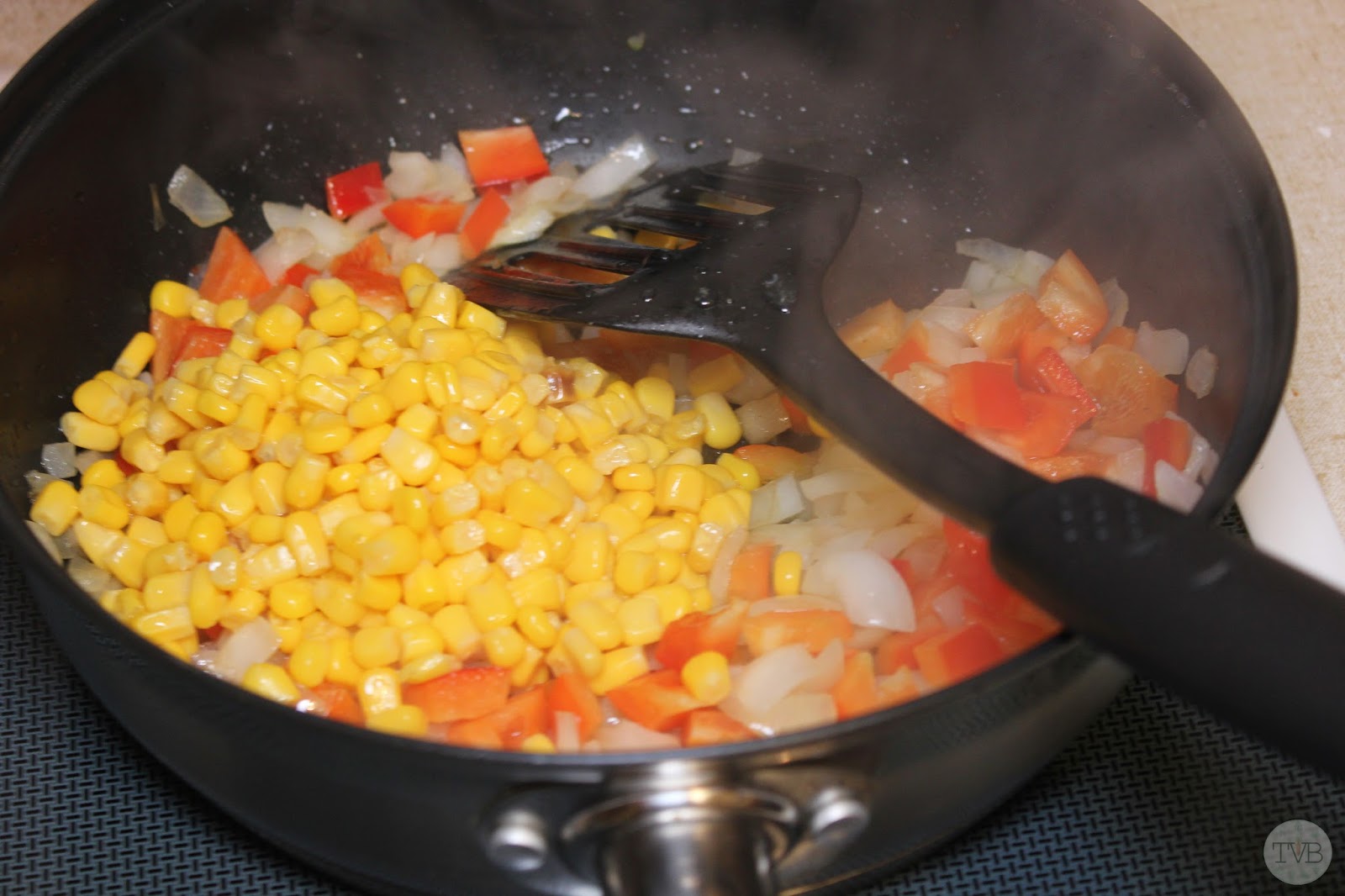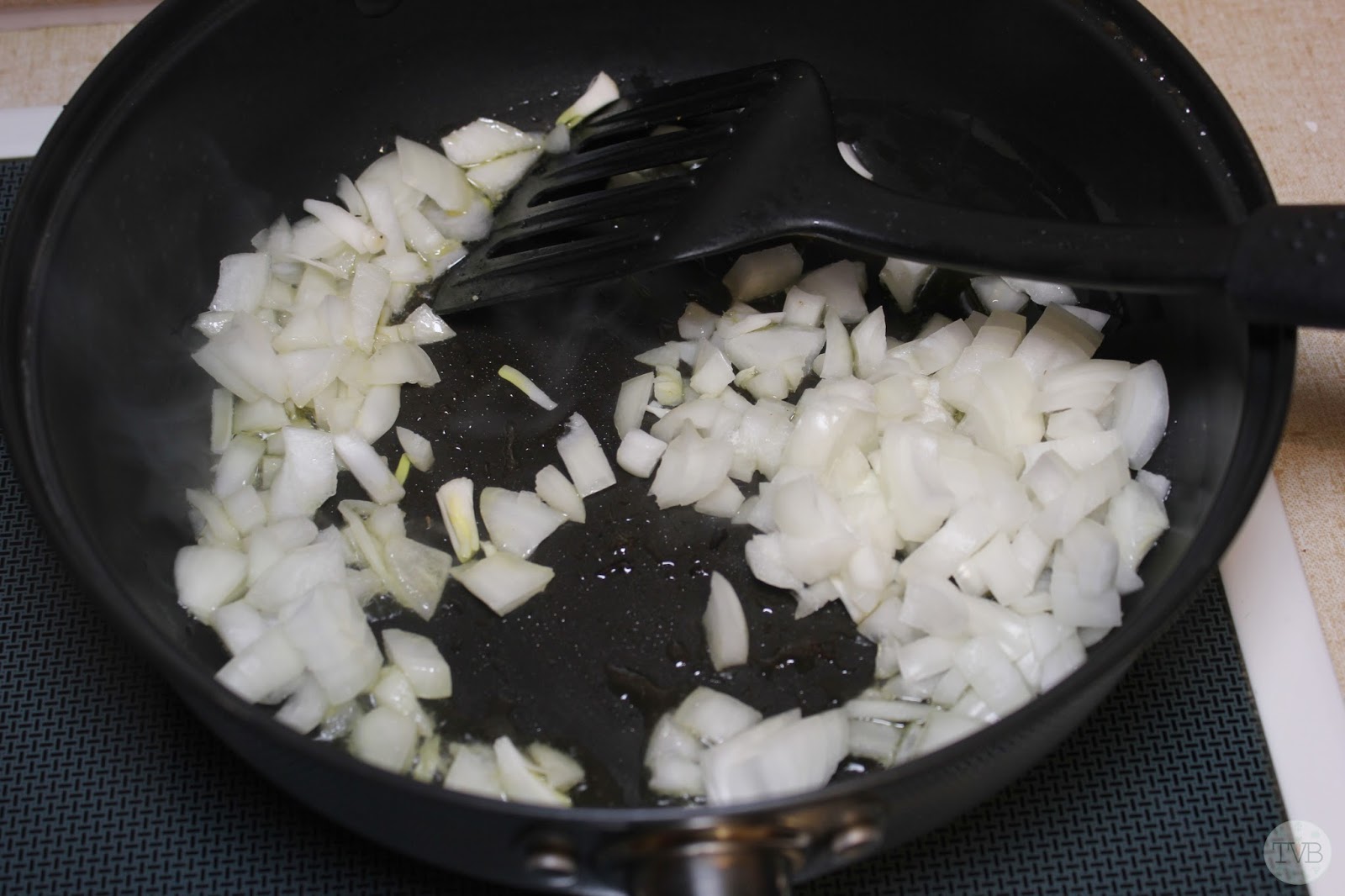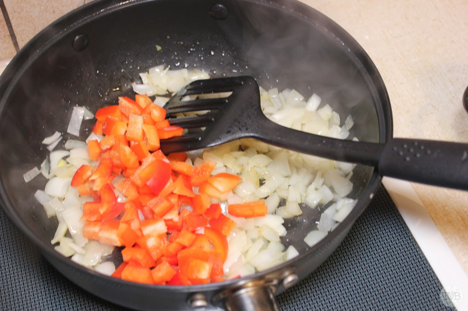 Sobald die 3 Stunden um sind nehmt den Teig heraus und lasst ihn noch ca. 15 Minuten bei Zimmertemperatur rasten. In der Zwischenzeit können wir schon mal die Füllung herrichten. Dazu gebt ihr alle Zutaten nach und nach in die Pfanne und bratet alles kurz an.