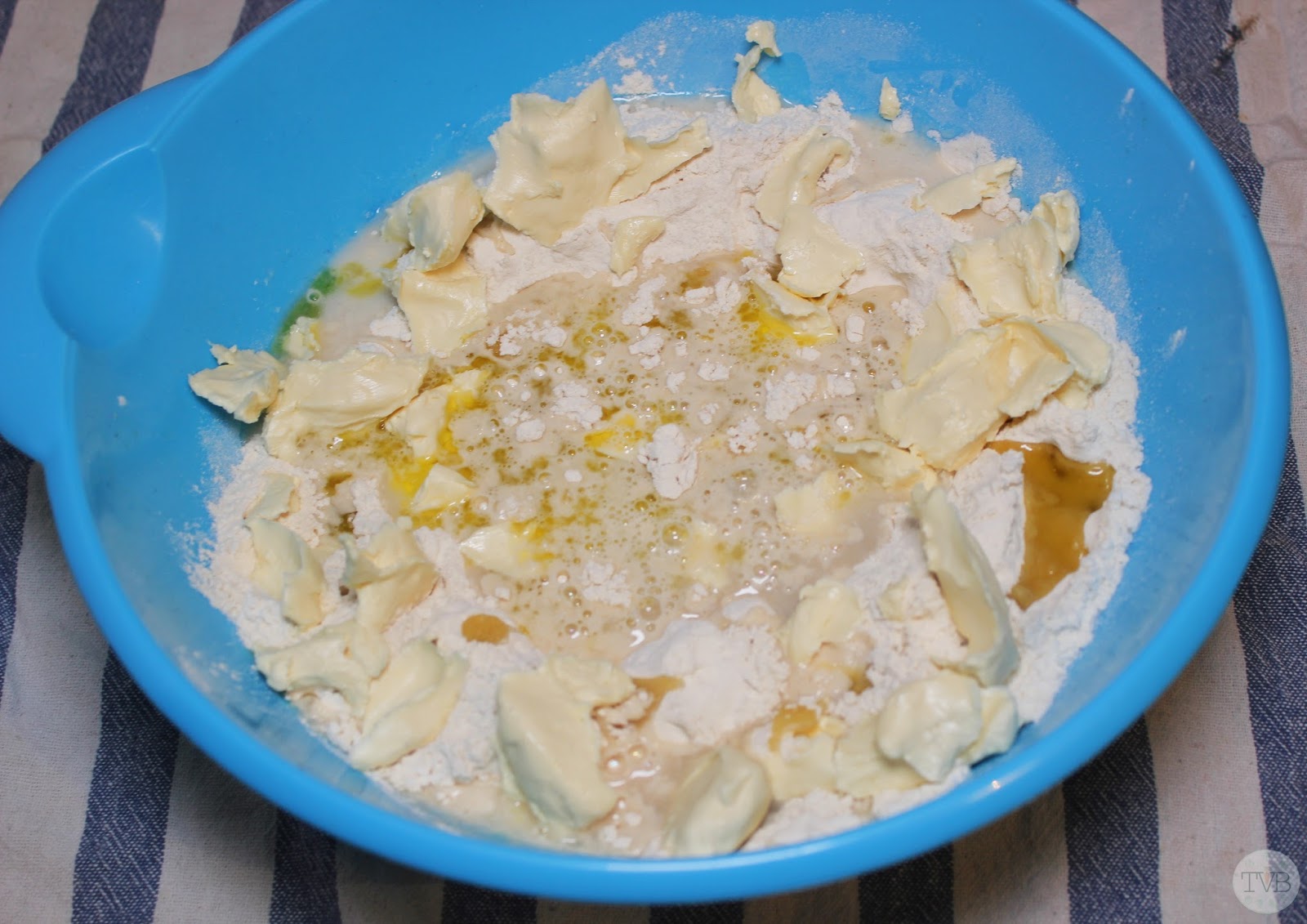 Als erstes gebt ihr alle Zutaten für den Teig in eine Schüssel und verknetet sie zu einem glattem Teig. Dieser muss dann erstmal für 3 Stunden im Kühlschrank rasten.